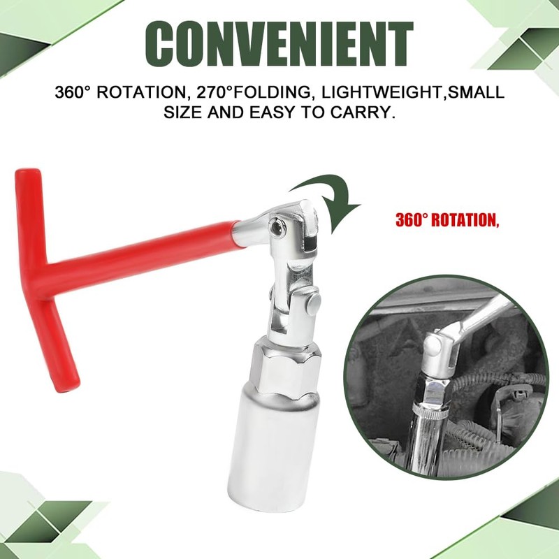 - [360-degree rotation] : The spark plug wrench can be rotated 360 degrees, very flexible, can meet the different angles of installation/disassembly of spark plugs, saving time and effort. And when it is not needed, the spark plug puller tool can be folded and stored, lightweight and portable, it will not take up too much space in the toolbox