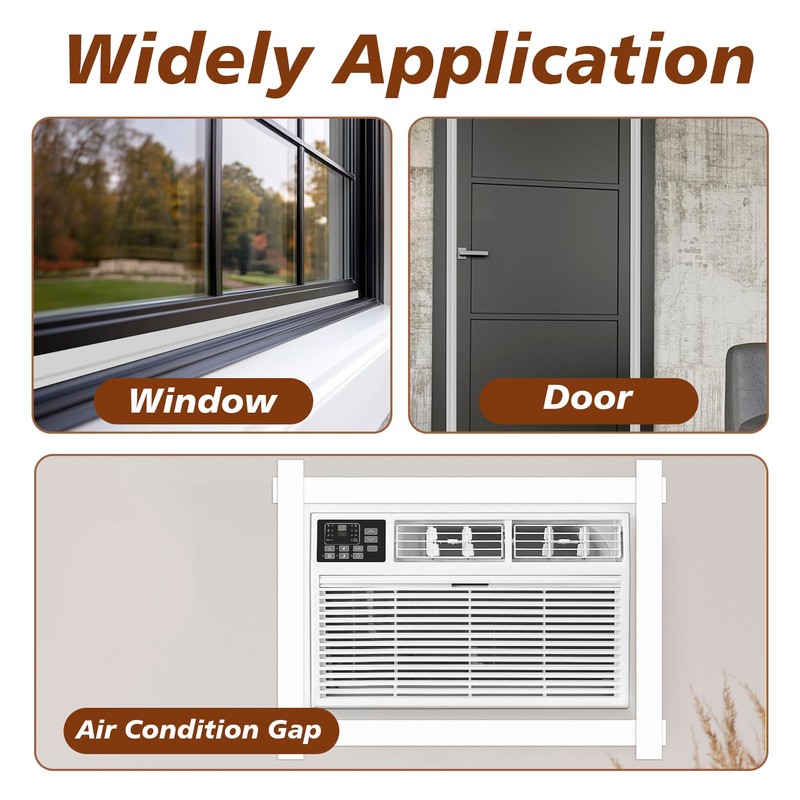 • Wide Range of Gap Applications:Our waterproof sealing tape for window air conditioners is suitable for a wide range of applications, including window frames, door frames, door gaps, closet doors, cabinets, wardrobes, air conditioners, and any other gaps where air leakage may occur.