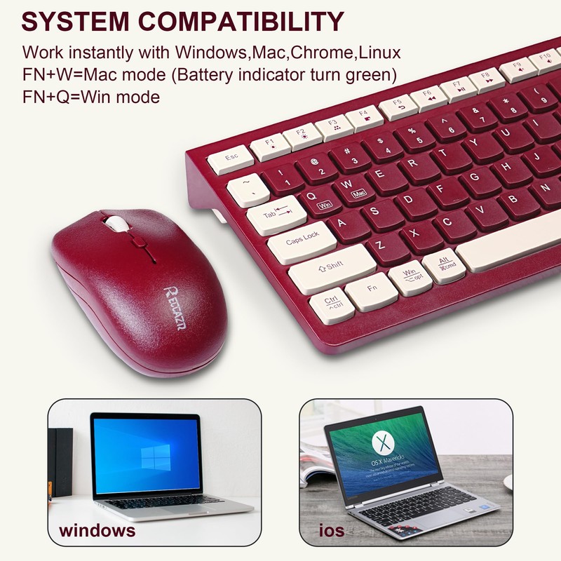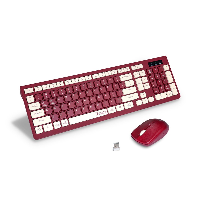 Wireless Keyboard and Mouse Combo, Reccazr 2.4G Full-Sized Keyboard and Mouse Cordless, 3 DPI Adjustable Mouse, Dual-System Keyboard for Computer/Laptop/Windows/Mac (Wine red)