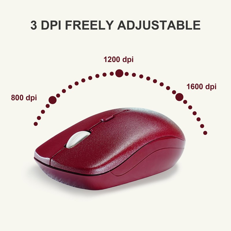 - 【3 DPI Adjustable】 800-1200-1600 adjustable DPI this 2.4GHz cordless wireless mouse has 800-1200-1600 ADJUSTABLE DPI. And with 10m connection distance. easily change the sensitivity of the cursor according to your actions, and meet different people according to your preferences.