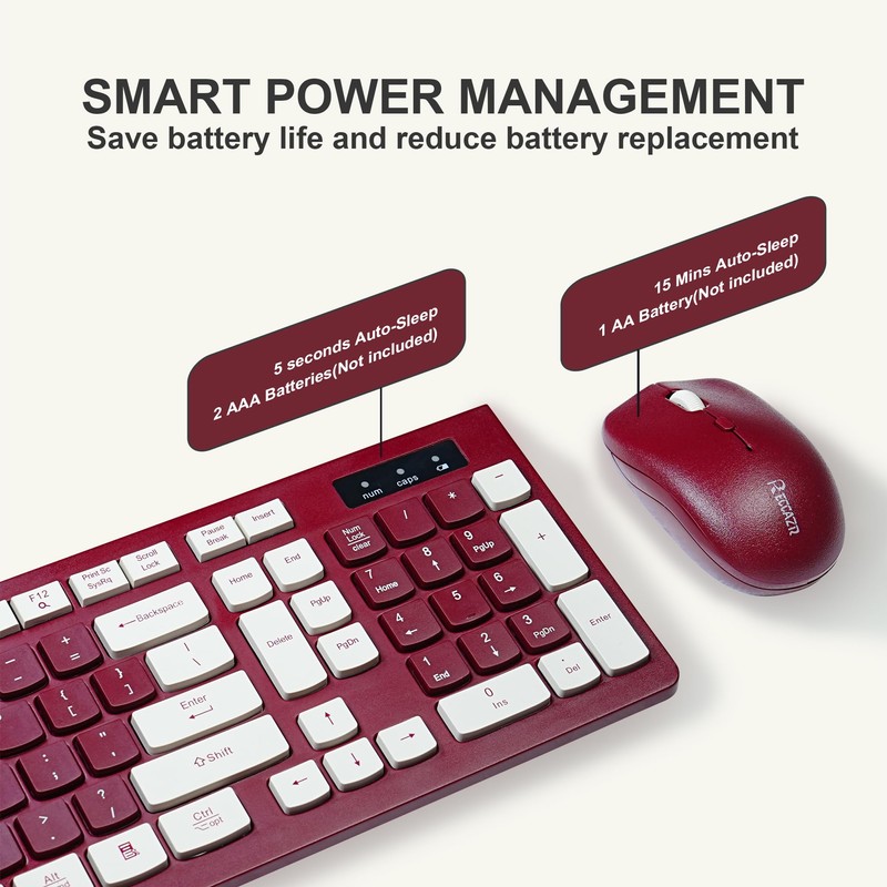 - 【Auto Power Saving Function】Wireless keyboard and mouse have a smart auto-sleep mode to save power. They will enter sleep mode after stop using a while(Refer to the instructions for details). Unplug the receiver or after the PC shutdown, they will enter sleep mode too. You can press any keys to wake. (battery life may vary based on user and computing conditions)