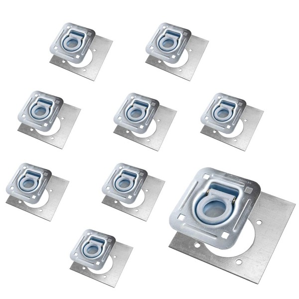 Recessed D-Ring 6,000 lb. Cap. Tiedown Anchors w/Backing Plate - 9 Pack