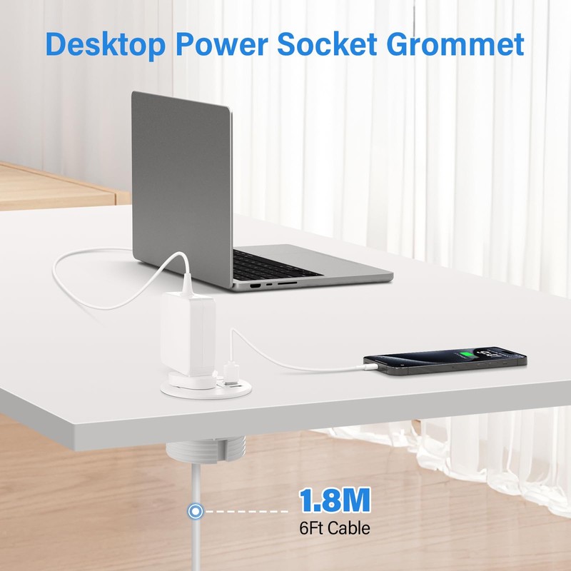 - Easy Installation: Designed for 80mm (3.15") desktop cable holes. Simply create an 80mm hole in your desktop or use an existing cable grommet. Insert the socket, then securely fasten it by hand-tightening the included locking collar