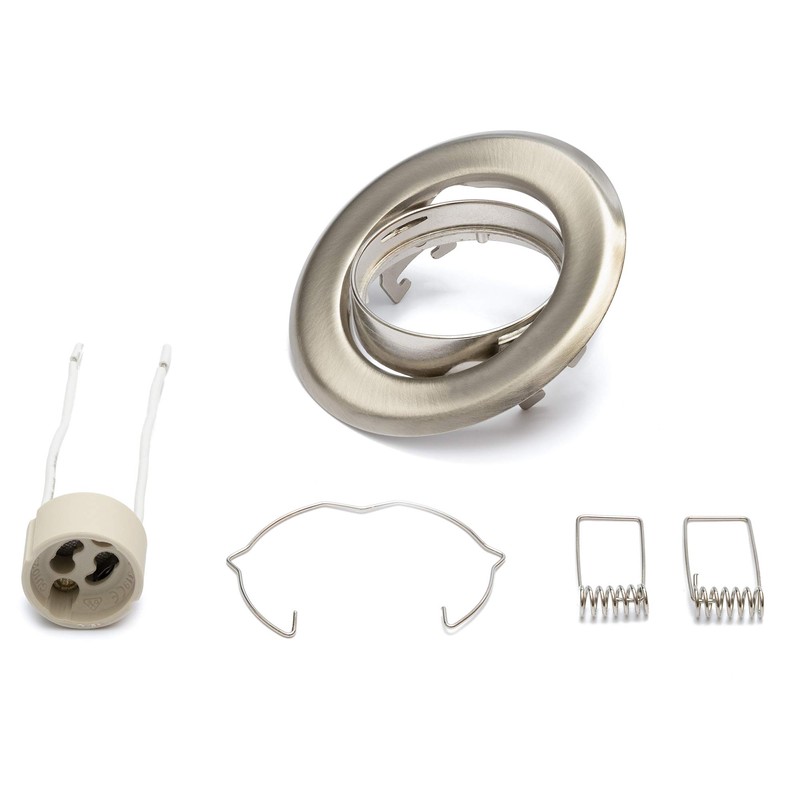 Recessed Spotlight Set GU10 Mounting Frame Stainless Steel Brushed Stainless Steel Look Includes GU10 Socket for LED or Halogen Bulbs, 30° Swivel, Round
