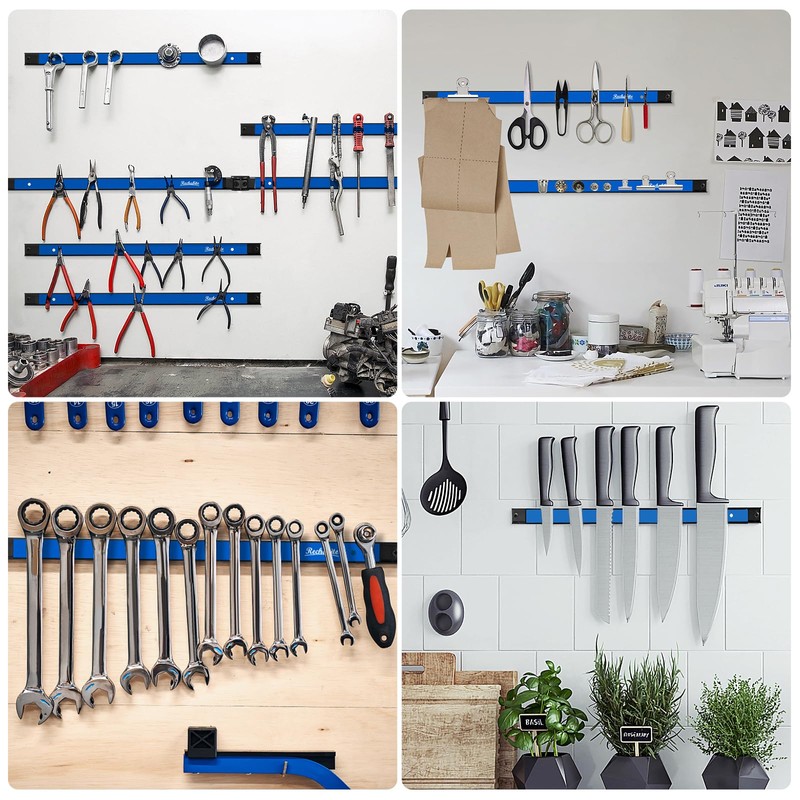 - VERSATILE WORKSHOP ORGANIZER: Clean and get rid of your messy workshop, tool box. The magnetic tool racks can easily organize wrenches, hammers, pliers, screwdrivers, wire cutters, saw blades, etc. Keep your garage, workshop, and also kitchen organized and clean, ensuring all your tools are visible and within reach.