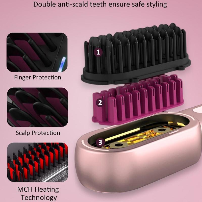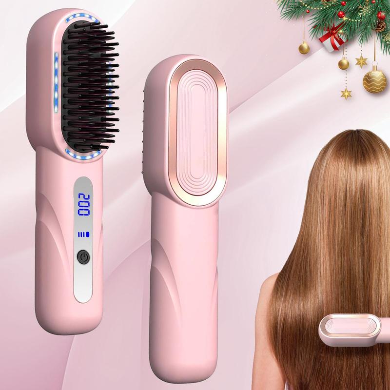 Rechargeable Hair Straightening Brush, 1 Count Wireless Hair Straightener with Adjustable Temperature Setting & Blue Light Sterilization Function - Color: Dark Gray, Specification: 1 Count