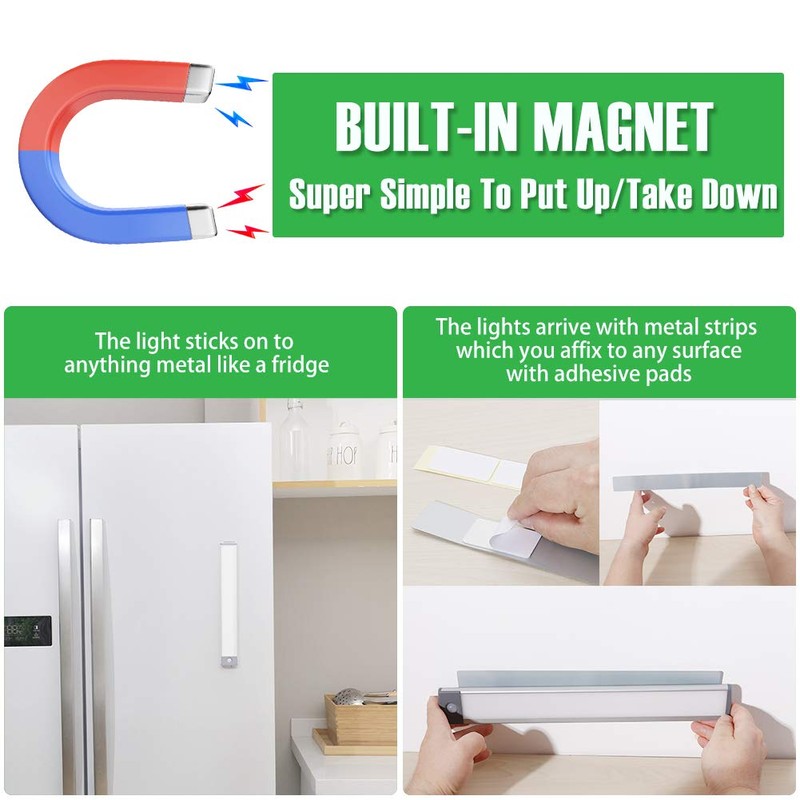- Easily Installs Anywhere : This motion sensor led lights they are a breeze to install as there is a magnet built right in to let you stick the bulbs on iron material the lights, if it's gonna go on something like wood or something like aluminum then you could use this included plate and they have some strong magnets on there to allow you to hold that in place.