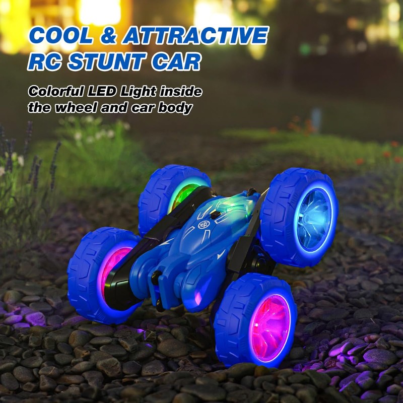 Rechargeable Remote Control Cars with Lights, Rc Cars for Kids 360° Rotating Double Sided Fast Flips 2.4Ghz 4WD All Terrain RC Stunt Toys for Ages 3-12 Years Old Boys Girls