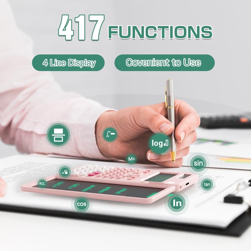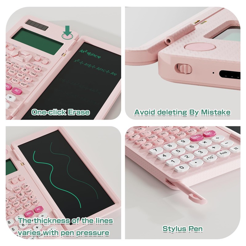 • 【Scientific Calculator with Notepad】Come with a 6.5 inch writing tablet and a pen, allowing you to take notes while calculating. Press the delete button to erase the notes, and also can lock it to keep it. (Slide the LOCK KEY)