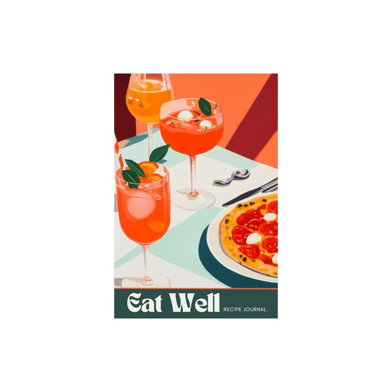 Recipe Book For Own Recipes: Pizza and Aperol Spritz Illustration Recipe Journal | Blank Cookbook To Write Own Recipes In | Gift for Foodie, Friend, Teacher