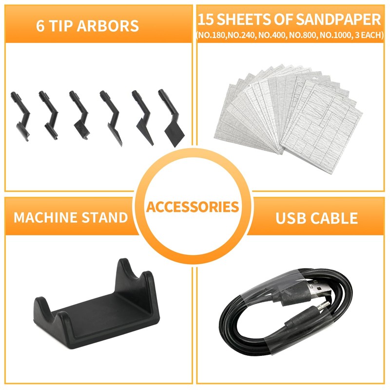 - 【Packing and After-Sales Service】The package containsRSH-1000 reciprocating sander, 6 sanding head, 15 sheets of sandpaper (No. 180, No. 240, No. 400, No. 800, No. 1000, 3 sheets each), stand, USB cable, and instruction manual. We are committed to provide high standard products and after-sales service. If you have any problems with our products, please feel free to contact us.