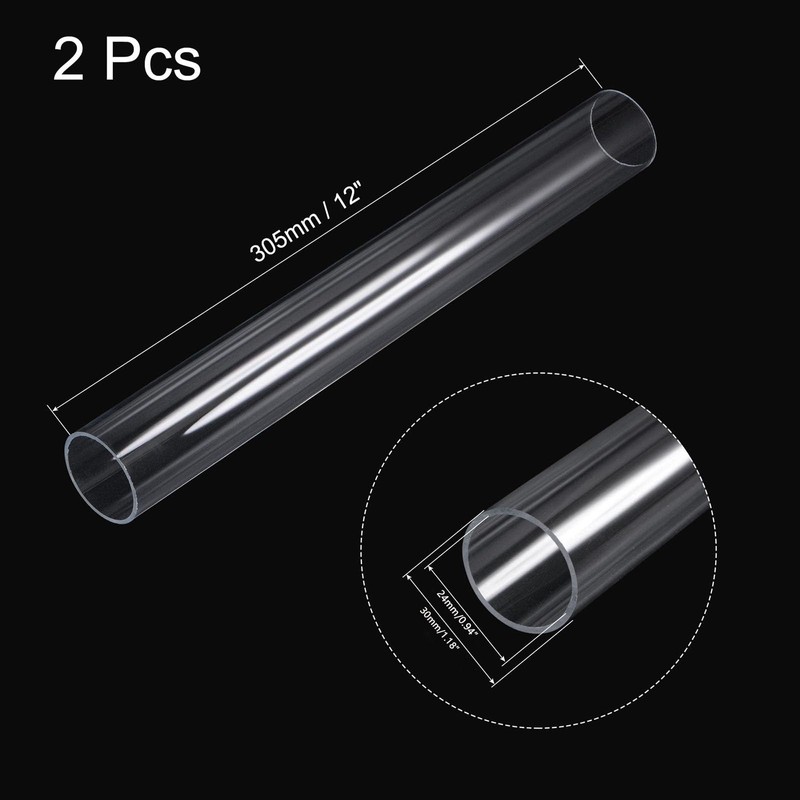 Recogwood 2Pcs Acrylic Pipe Clear Rigid Round Tube 24mm ID 30mm OD 305mm for Lamps and Lanterns, Water Cooling System