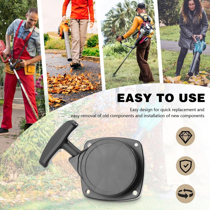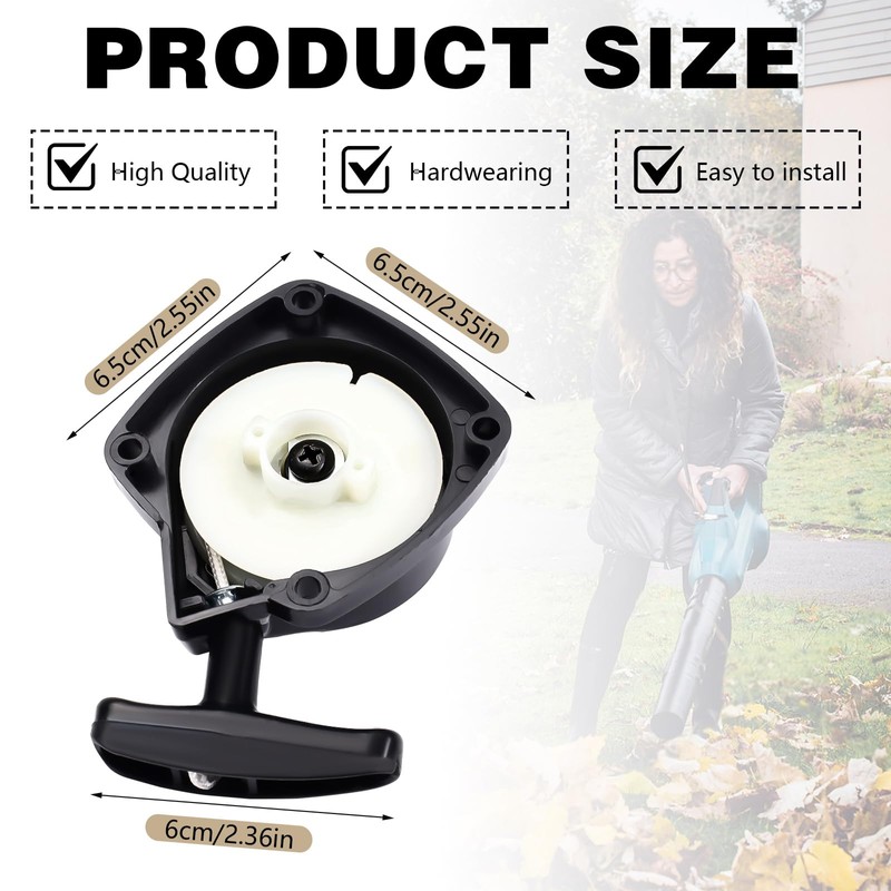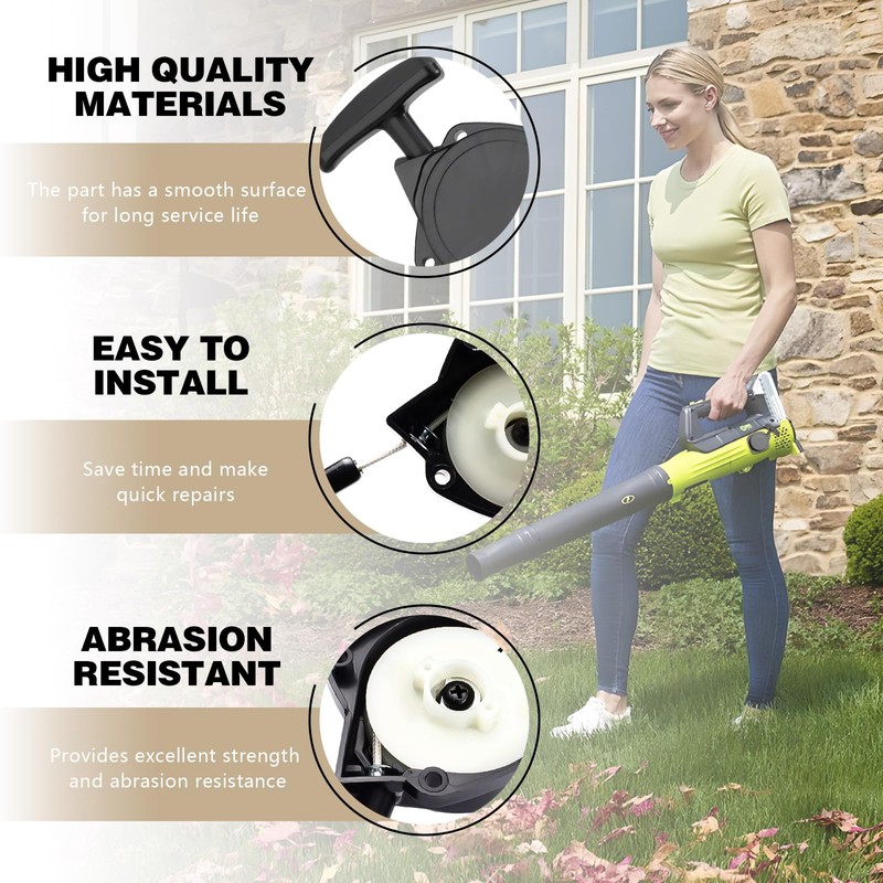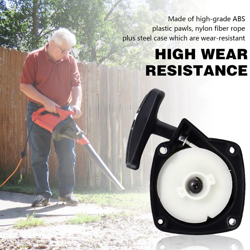 Made of high-quality ABS plastic and metal, it is not easy to wear and age. The anti-Okinawa is made of high quality nylon material with excellent strength and long service life. When you pull the rope, the recoil starter makes the crankshaft turn, which starts the engine. Easy to start when used with the rope. This recoil starter makes the blower faster and safer to use.