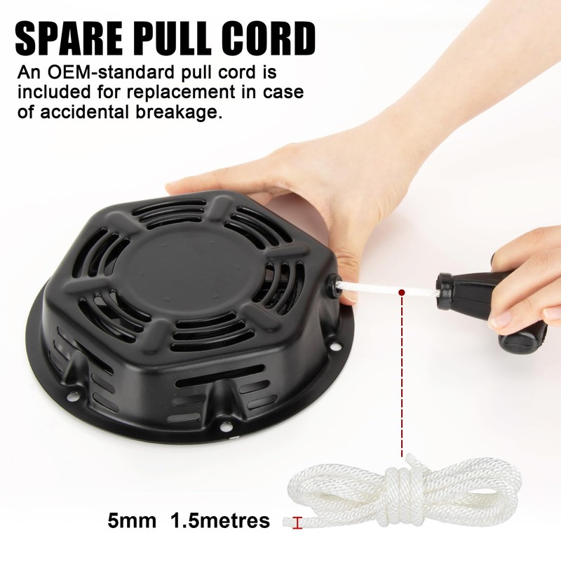 • 【Package Included】 Each package includes 1 recoil starter, 1 pull rope, and 3 mounting nuts. The product also comes with a spare pull rope.