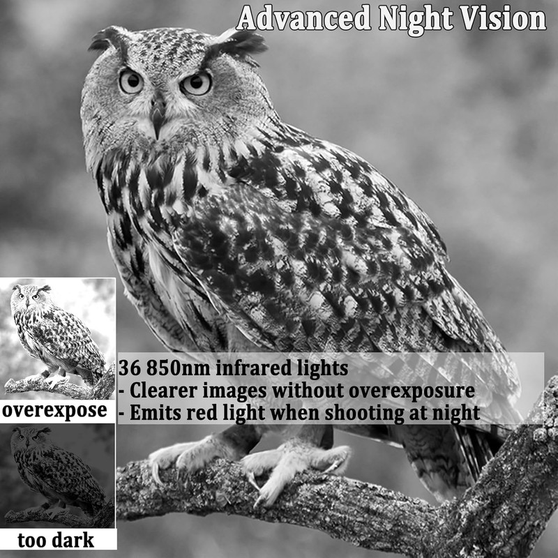 - 【Advanced Night Vision】36 pcs 850nm IR LEDs (emits red light when shooting at night) provide clearer and more stable image & videos, no overexposure problem compared to 940nm IR LEDs. (Distance up to 65 feet at night/distance up to 80 feet during the day).