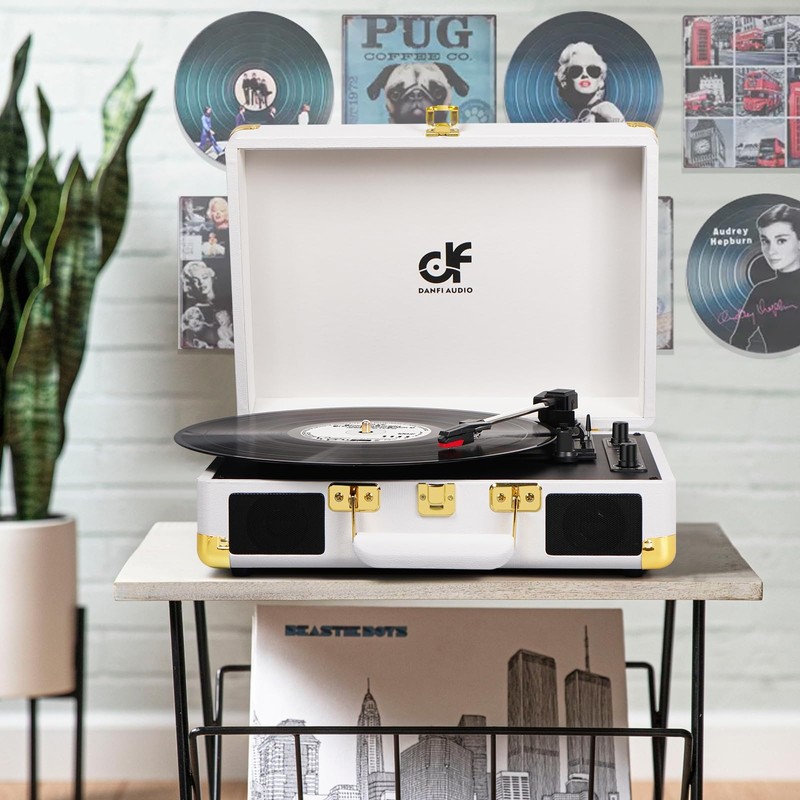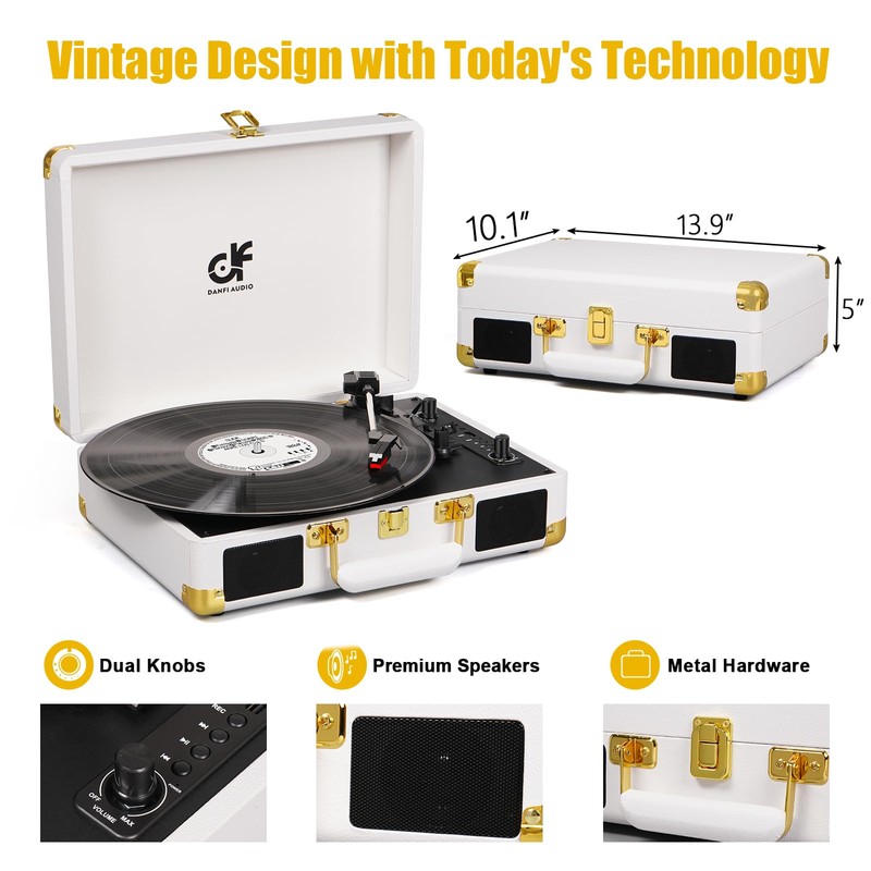 - 【Easy to Use】 - DANFI AUDIO design retro and contemporary style is blended in a vintage suitcase with an easy carry handle, providing ultimate flexibility for vinyl lovers to listen to music wherever and however they want. No assembly required, it not only decorates your room but also can be used as a stand-up speaker to play music.