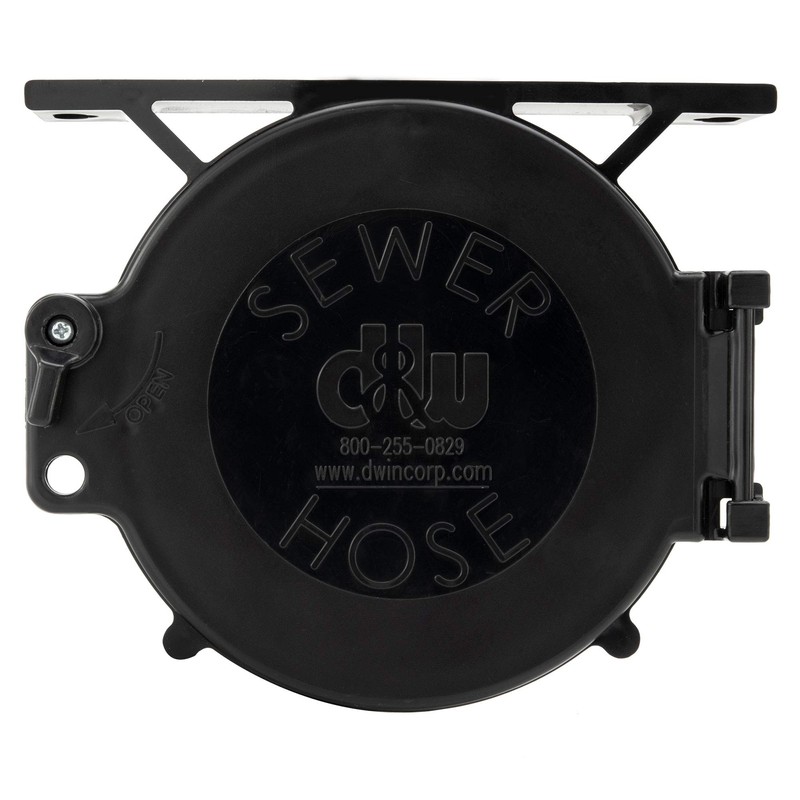 - With the latching door, you can make sure that the hose is still in good shape when you take it back out again. In addition to keeping the hose safe, you also keep your RV in good order by keeping the hose out of the way and your space comfortable by keeping any smells that may be there away from the living or recreation area.
