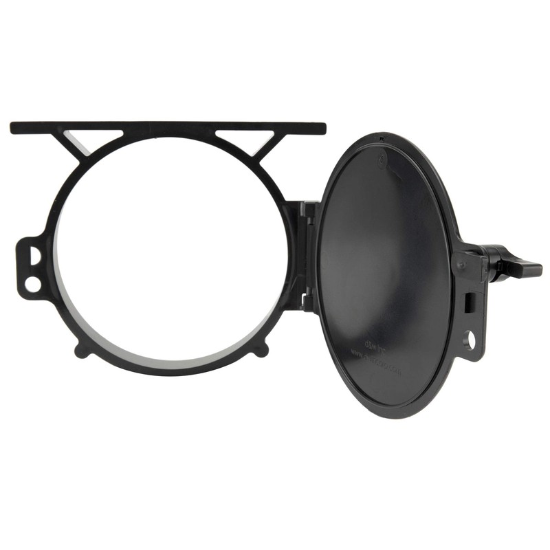 - This replacement hatch door and bracket measure 6” wide by 6” high by 2” deep and are made of durable plastic. The black color fits with the under-mount Super Tube body and is sized to fit the ends of the tube (not the center).
