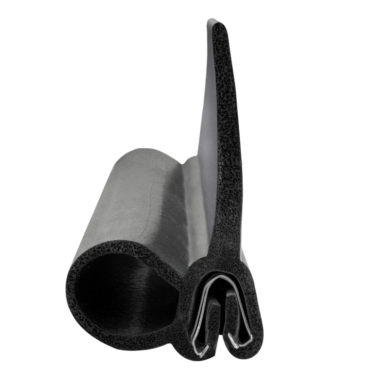 • This seal is a single bulb with a wiper. There is a strong steel spring to keep a strong grip while being able to be removed and replaced without losing the function. It measures 1.2" wide and 2.35" high in total, with the wiper measuring 1.6" high.