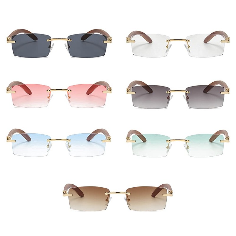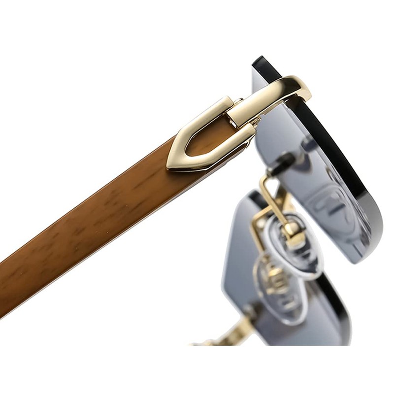 • RIMLESS RECTANGLE SUNGLASSES - The rectangle frameless design reduces the heavy feeling of the frame. The design of the wood grain legs makes the glasses more fashionable.