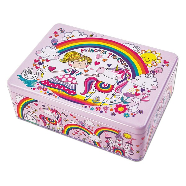 Rectangular Decorative Storage Tin For Girls - Princess Treasures - Hinged Tin