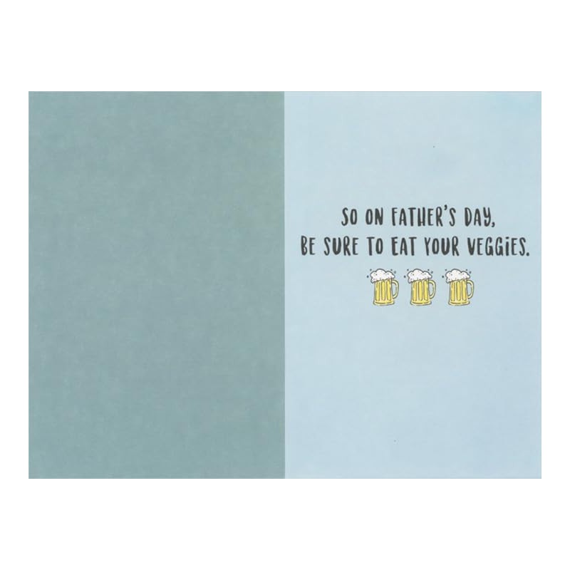 The interior of this Recycled Paper Greetings Father's Day card design reads: So on Father's Day, be sure to eat your veggies. The card measures 4.7x6.75 inches and is printed on recycled heavy cardstock. Includes 1 card and 1 envelope. The card has the following special features: recycled paper, tri-fold, full color interior. From the Tomato Cards line of cards. Made in the USA. Printed on recycled paper. Sustainable Forestry Initiative Certified Sourcing.