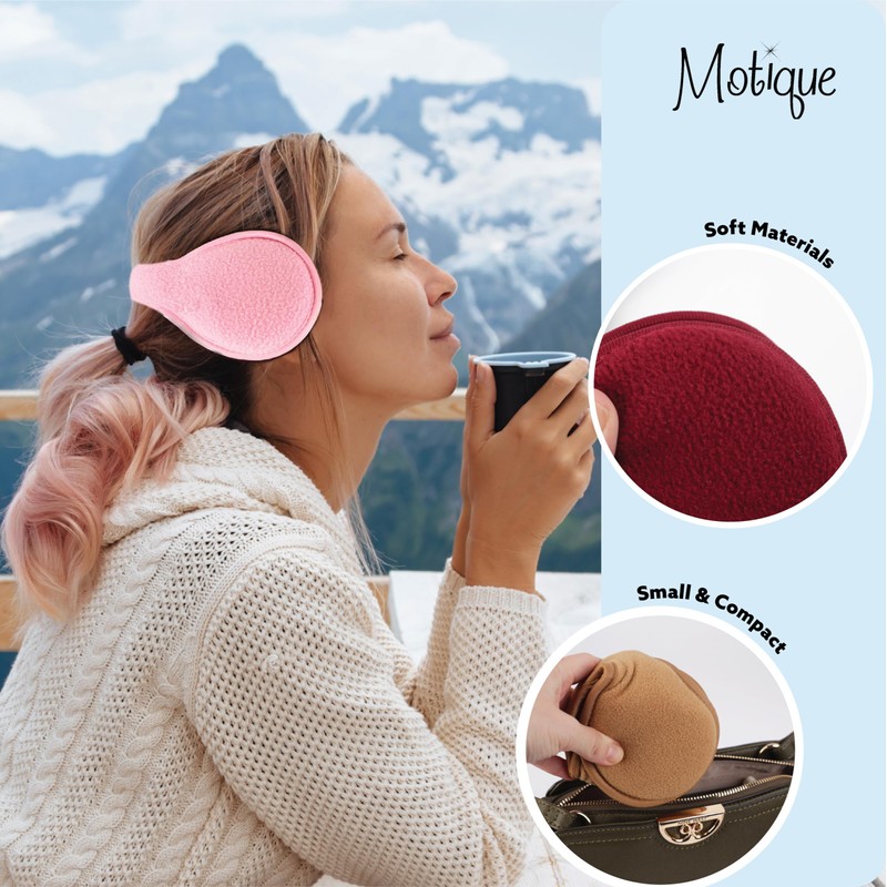 This is a warm ear muffler. The band goes behind the head and the large sides keep your ears warm and cozy. Metal inner frame keeps these ear muffs in place. The earmuffs expand and contract to conform to your head. They also fold compact so you can stick in your pocket or purse.