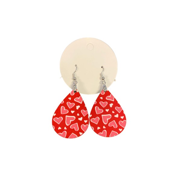 Red and Pink Hearts Pattern Teardrop Earrings - Beautiful Printed Earrings are handmade from MDF wood with a glossy surface. Each earring is cut to precision and the design is applied to the glossy surface. These are large statement earrings to stand out in a crowd. The colors are vibrant and the earrings are very lightweight. The design is only on the front. Each pair is handmade in our studio in Texas .Mini Tear drop earrings Size - size is 1.5″ long and They are 1/8" thick. Image is printed on one side. These are made form MDF - laser cut then sublimated with the image - Super cute and fun accessory for everyday. Earring findings are Stainless steel. These come in a gift box for protection during shipping and easy gifting!