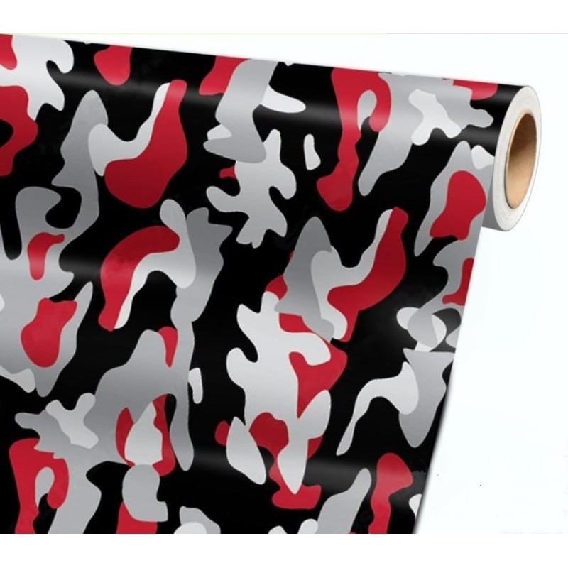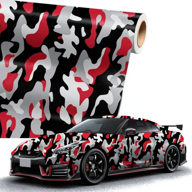 RED Black White Gray Camouflage Matte Premium Vinyl Car Wrap Decal Film Sheet Air Channel Release Technology + Free Tool Kit (120" x 60" / 10FT x 5FT)
