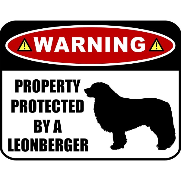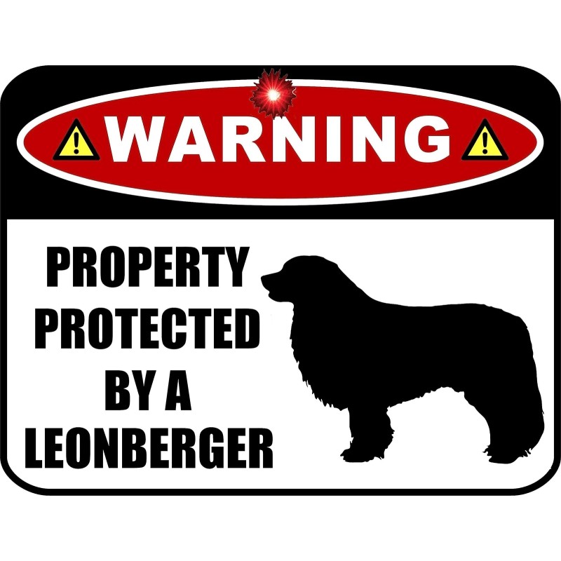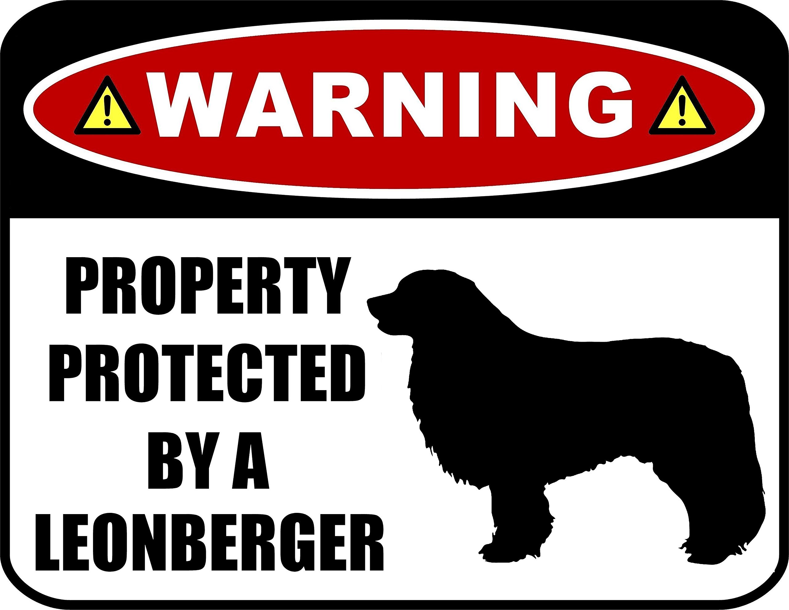 LED Light Up Red Flashing Blinking Attention Grabbing Laminated Dog Sign Warning Property Protected by a Leonberger (Silhouette) Yard Fence Gate