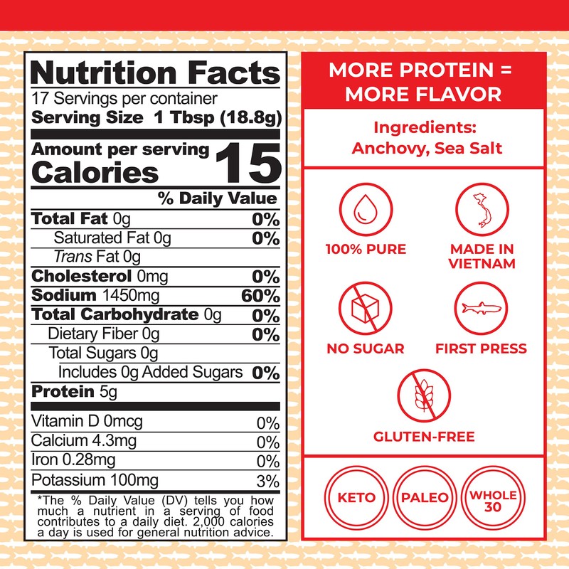 - JUST TWO INGREDIENTS: We use only sea salt and black anchovies caught off of the crystal clear waters of Vietnam’s Phú Quốc archipelago. There's zero dilution from water.