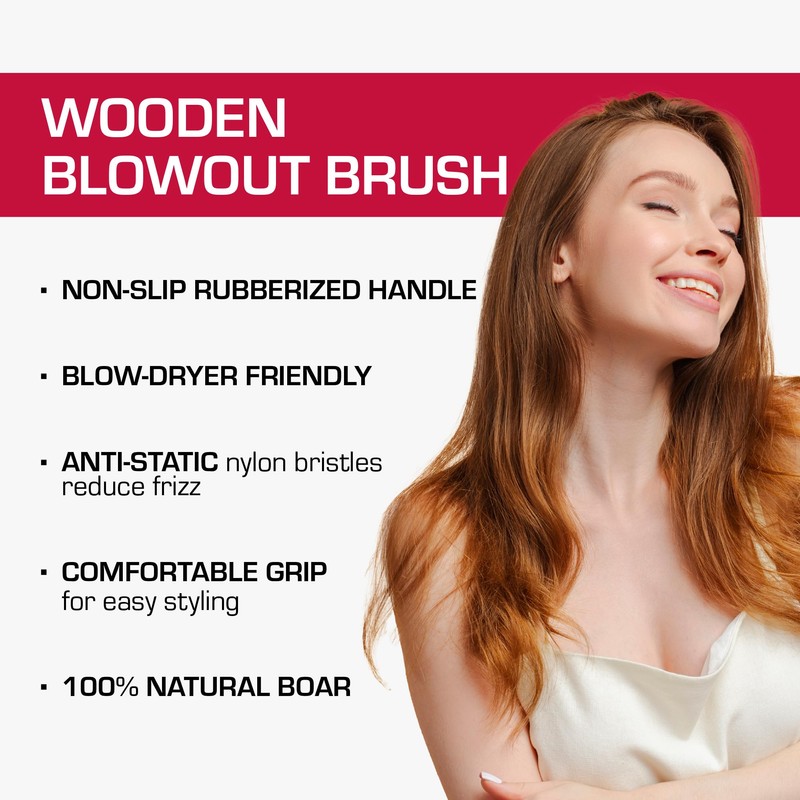 Red by Kiss Wooden Round Blowout Hairbrush, 100% Boar Bristles, Non-Slip Handle, Enhances Shine & Reduces Frizz, Blow-Dryer Friendly (1.5 IN)