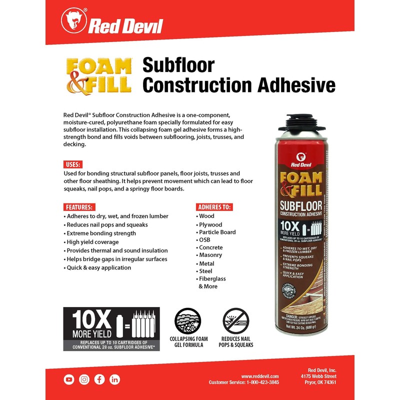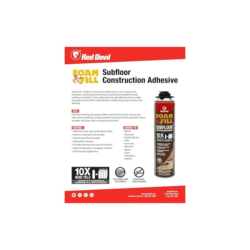 Red Devil 0923 Foam & Fill Subfloor Construction Adhesive, Off White, 24 oz., 1 Pack