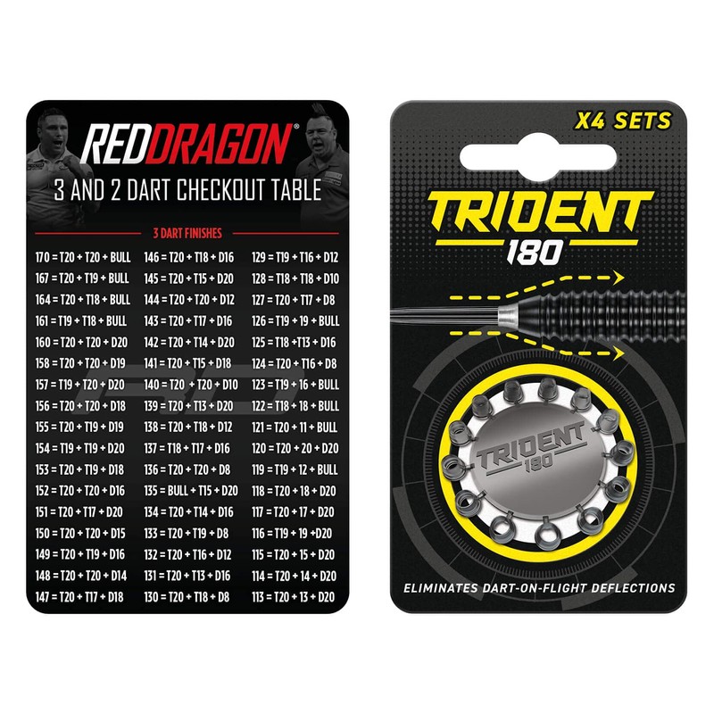 - Pack includes 16 x sets of nylon shafts available in a variety of colours and lengths to suit every need, 16 x sets of flights in varying colours, designs and shapes, x 1 pack of Tident 180's to help give further flight protection, and 2 x sets of flight savers to aid in reduced deflections and protect the stability of the flight