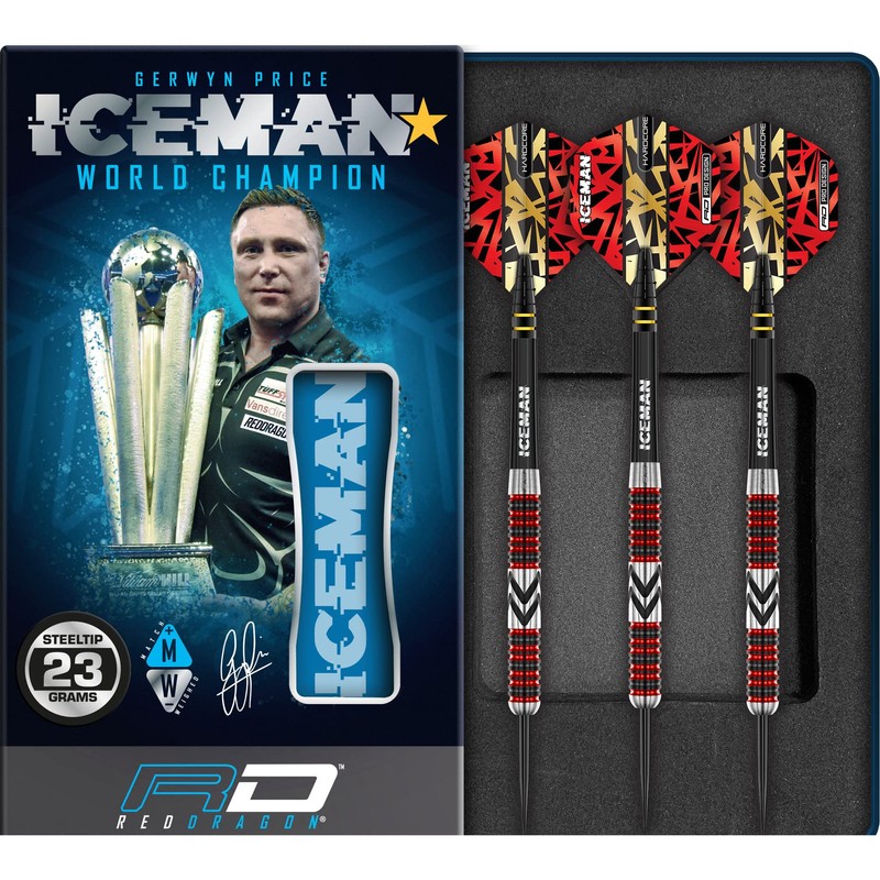 RED DRAGON Gerwyn Price Iceman Firebird 18 Gram Softip Premium Tungsten Darts Set with Flights and Stems