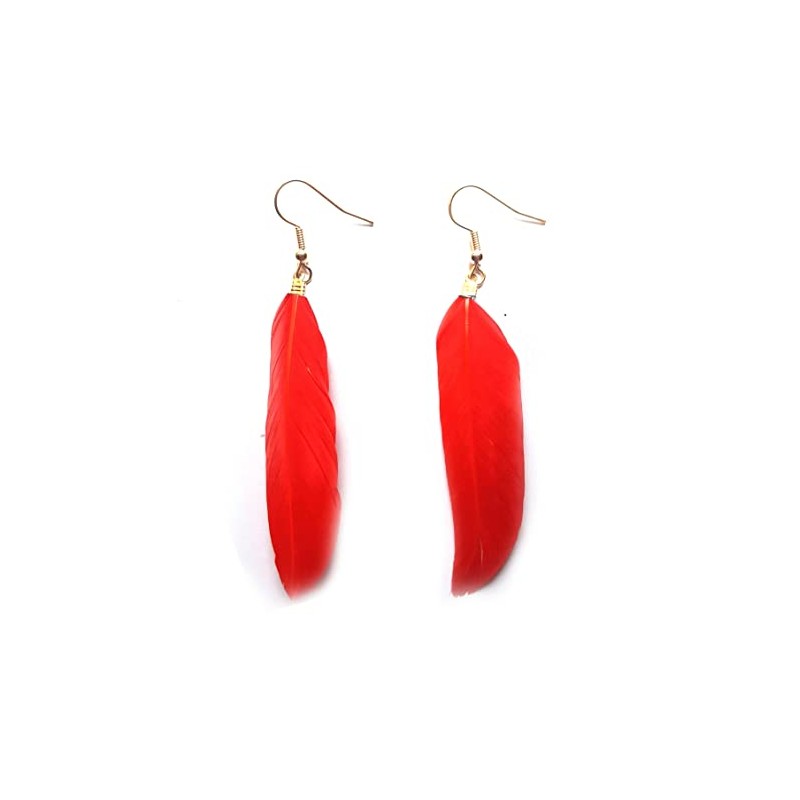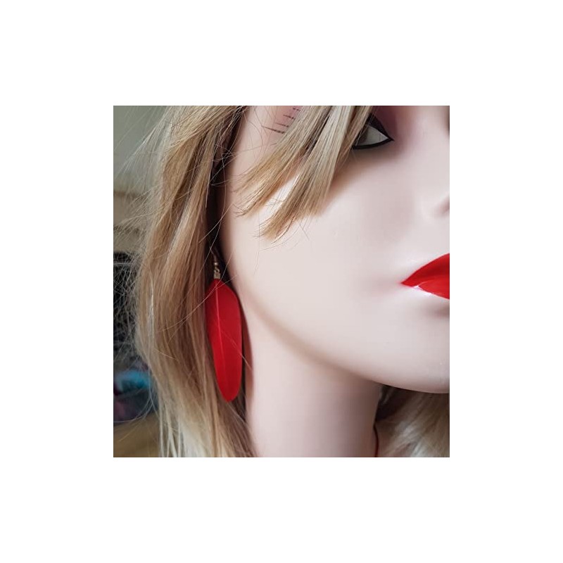 • Our hand crafted feather earrings have been made with a vibrant red goose feathers