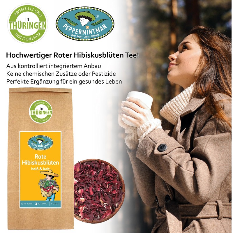 Red hibiscus flowers 100 g - flowers for hibiscus tea without artificial colours - thirst quenching tea - peppermintman
