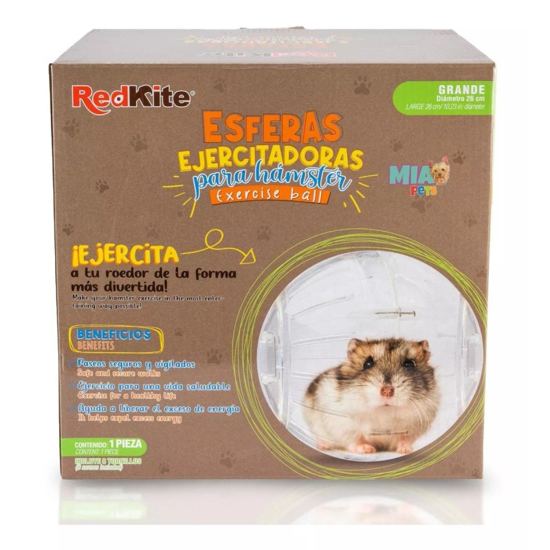 Las esferas ejercitadoras RedKite® satisfacen la necesidad de movimiento que tienen los roedores. El ejercicio y entrenamiento contribuye de manera significativa a su bienestar general. Es la manera más segura en que tu pequeño peludo explore el mundo y corra libremente por tu casa o jardín sin peligro se extraviarse, o peor, de ser pisados. Las esferas ejercitadoras RedKite® están hechas de plástico resistente transparente que es de vital importancia para que el hámster tenga una visión y percepción correcta de su entorno.