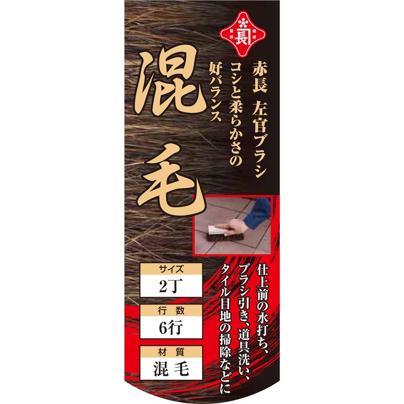 Red Length 左官 Brush with 6 Rows Red 混毛 Size 2 Pattern