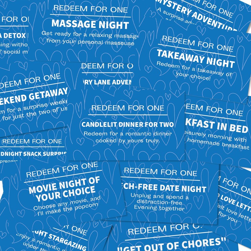 Each coupon within this charming booklet holds the promise of a unique and unforgettable experience. Imagine surprising your partner with a romantic candlelit dinner, a spontaneous picnic under the stars, a cozy movie night at home, or an exhilarating outdoor adventure. Our coupon book offers a delightful array of options, ensuring there's something for every taste and preference.