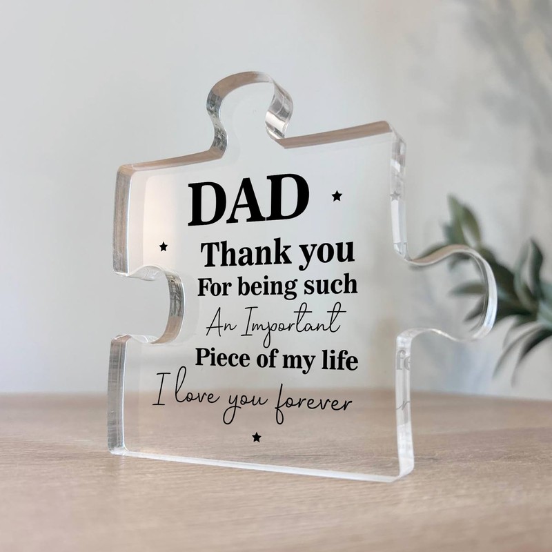 - Let your Dad know how much you love him with a unique and meaningful gift from Red Ocean Gifts. This Dad Acrylic puzzle piece plaque would be a lovely gift to let your Dad know how much you appreciate him for his Birthday, Father's Day or for Christmas
