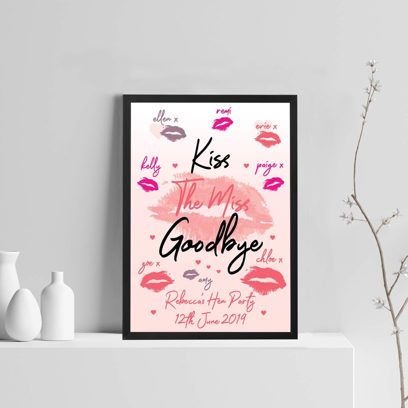 • Suitable as:kiss the miss goodbye frame, kiss the miss goodbye personalised,hen party