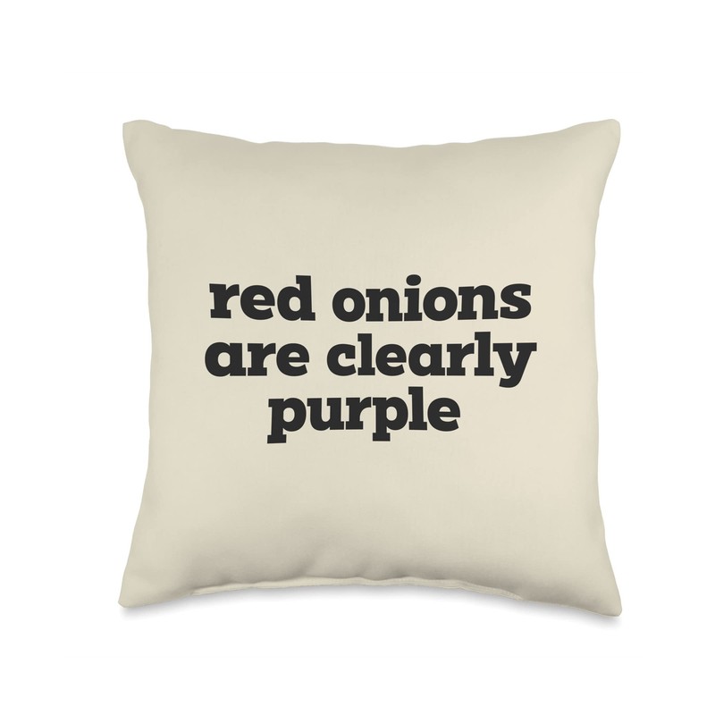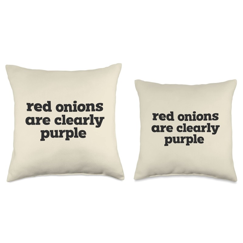 • Funny Vegetable Throw Pillow, Red Onions Are Clearly Purple. These Make Great Funny Chef Gifts.