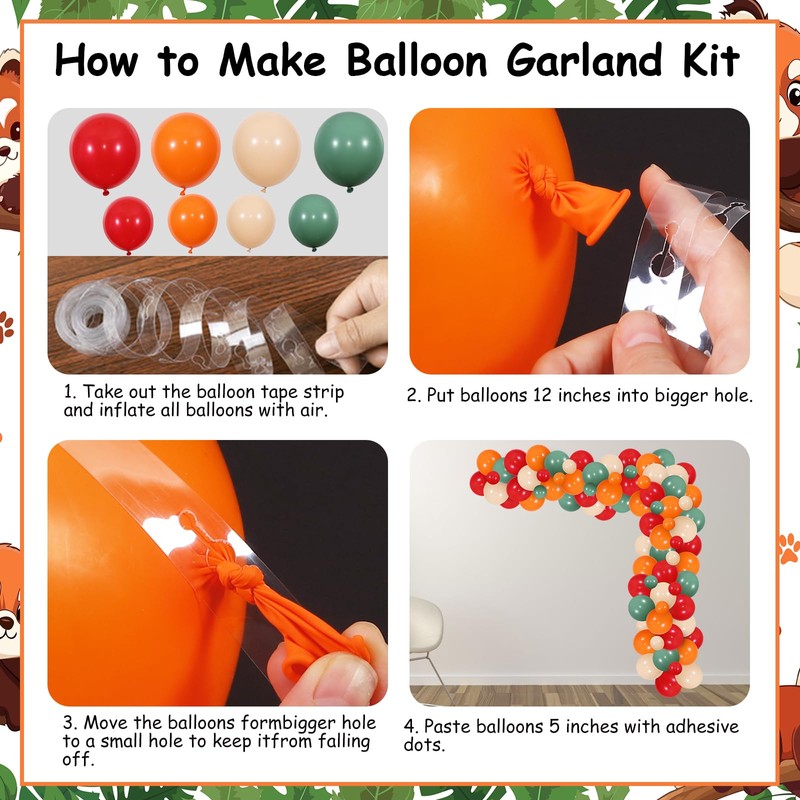• Easy To assemble: The cute red panda themed gender reveal party decoration offers all the assembly accessories you need, such as adhesive dots, balloon ribbon and balloon chain, help you assemble the oranger green balloon decoration. You can combine the balloon chain with the backdrop for a birthday party gate or decorate any specific places you want.