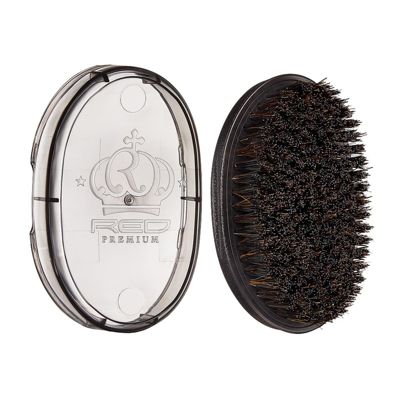 Red by Kiss Premium Pocket Wave Bow Wow Curved Palm Brush – Boar Bristles for 360 Waves, Curved Design for Precision Control, Ideal for Coarse, Curly, Short Hair & Fades (Medium)