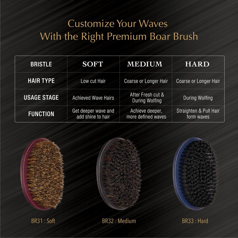- This boar bristle brush is excellent for smoothing, styling and defining and deepening wave styles. It works best on medium to coarse hair, shorter cuts and fades and thick and curly hair