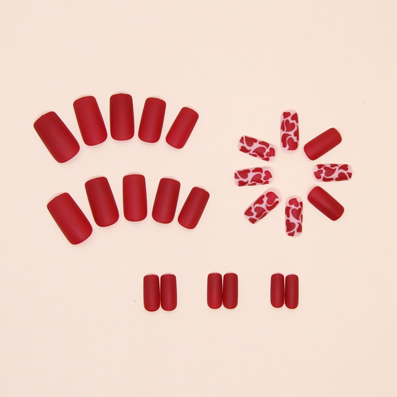 Red Press on Nails Heart Fake Nails with Glue Matte False Nails Square Nails ...