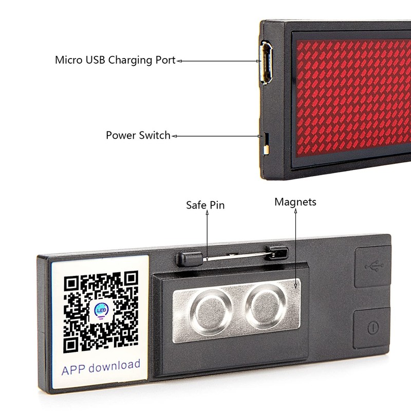 Red Programmable Scrolling SMD LED Name Badge,11x44 Pixels, Support Multi-language,for Advertising Promotions
