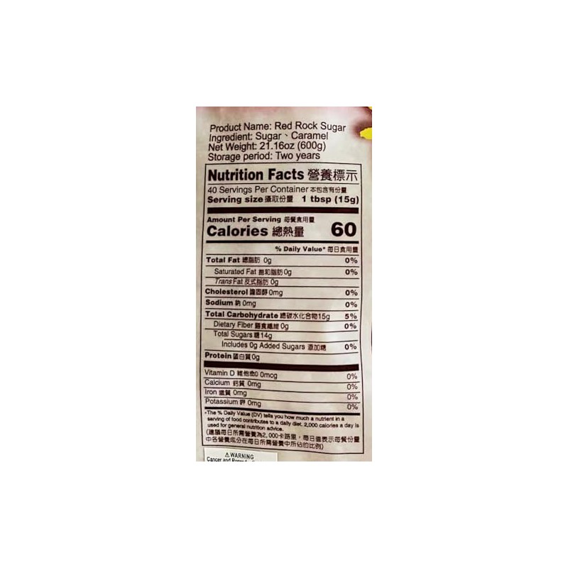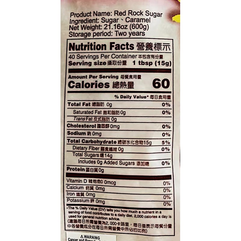Red Rock Sugar, Crystallized Natural Sugar, 21.16 oz (600g), for Coffee, Milk Tea, Cookies