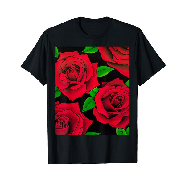 Red Roses Wild Rose Bold Floral Design Pattern Art T-Shirt